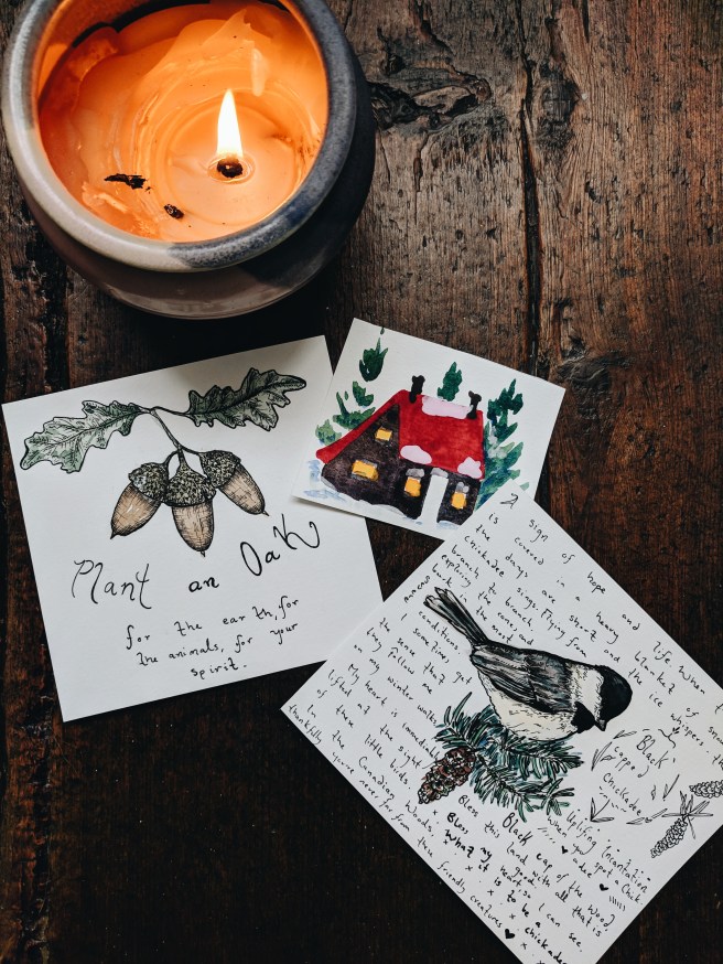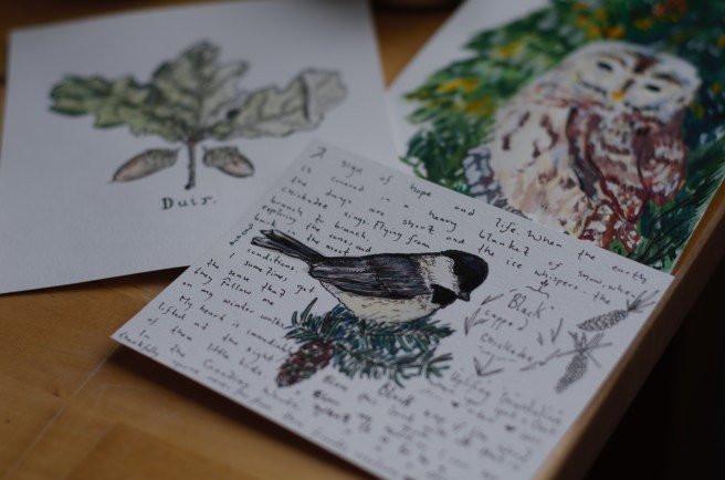 I have roughly 10-15 small illustrations planned and want it to be my hand writing just like the old school zines.  Perhaps a combination – I’m not really sure.  I also am planning for there to be an emphasis on the magic in the natural world, with small incantations (prayers, spells… whatever you want to call it), folklore and just the general awe that I feel when outdoors.    I feel like.. when I’m drawing a leaf or acorn or something that so many people would probably not think much of – that I am in my absolute element.