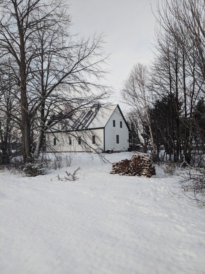Our little farm house (actually, by my standards, pretty dang big – I could live happily in a quarter of the size!) in the snow this winter