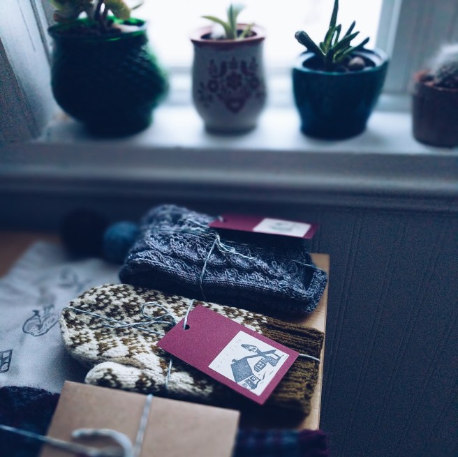 This week I finished a couple pair of fingerless mittens for the shop.  I drew, baked, walked (more like glided across ice – it’s so icy out there right now) with Henry, collected firewood,  painted, carved, read Alice Munro, ordered wool for new projects, knit a thrummed mitten for my mom, planned our basement renovation, started seeds, organized cupboards and cleaned!  I had a friend over with her little dog (our dogs are good pals), drank copious amounts of tea, started a new Icelandic Sweater for the shop!   All while consciously staying away from my phone and pondering about what really makes us truly happy.